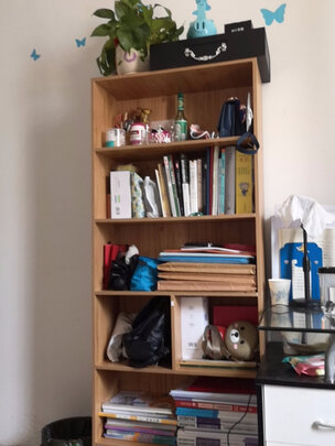 收到书柜很久了,可以放很多东西,书包、书本资料袋、化妆品、绿色植物、茶杯雨伞等日常生活用品,最下面可以收纳搁置的鞋子。有了这个柜子,卧室的焕然一新,井然有序,很舒服。柜子需要自己组装,通过客服给的视频,一步步很容易安装,一个女孩子也是可以独立完成的,超级简单。选购的时候刚好做活动,价格非常满意。