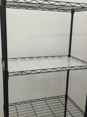 很好搭,一个人15分钟左右搭好,网格面面积合理,放一些小家电很合适,没放东西会有点晃,下次放重一点的在下层压一下。