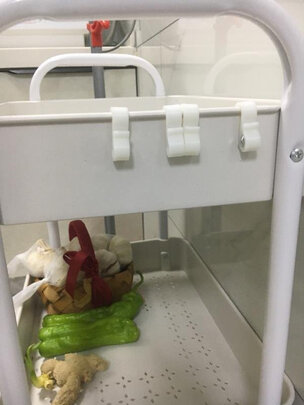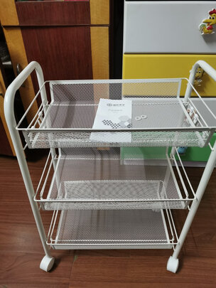 三层白色的厨房收纳架,包装非常结实,东西保护得很好,值得好评!安装简易,手感不错!用料扎实!质量很好!平常用基本没有问题,用来放宝宝的奶粉辅食等东西,物美价廉。