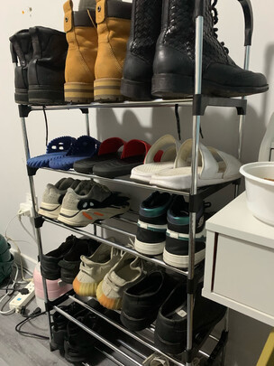 质量比想象中的要好些,收到包裹以后几分钟就安装好了,说明书写得很详细,平稳放好以后很扎实,不会摇晃,评论每排放三双鞋,平时外出常穿的鞋子可以暂时放在这个鞋架上,不经常穿的就放在鞋柜。