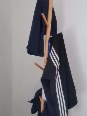 回来是需要组装的,组装很简单,也都有教程图,一会就可以搞定了,上面可以挂衣服,下面可以放东西,刮得衣服也比较多,侧面还可以挂包,利用率很高