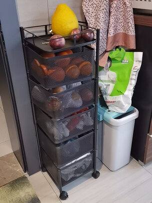 东西虽小,五脏俱全,厨房调料,用品基本都可以容纳进这个小架子里面啊,整个厨房瞬间整洁,还能节省不少空间,非常好用,下次再买一个吧。