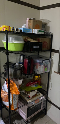 发货很快,收到后安装简便,试了一下,发现大小、宽窄和高低都正好,真的是尺寸太合适了。安装好篮子,摆了五层,把家里的瓶装矿泉水、面包?、牛奶等都分类放进去,还很宽敞呢,整洁了许多,心情也好多了。