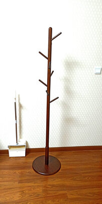 外观样式:庄重的颜色,外观好看;商品质量:应该是实木的,底座比较稳,每个部位都标了序号,组装很简单;产品材质:硬的材质, 有点油漆味,通风晾几天就好了;承重能力:挂挂衣服是没啥问题的