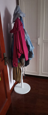 家里之前的衣架被孩子拉倒弄断了,家里外套都没地方挂了,京东物流很方便第二天就送到。这个是圆盘底座的,放在地下很稳当,也不占地方,挂衣服的挂杆也挺结实,是拧在主杆上的,我一个人十分钟就搞定安装了,衣架的颜色和家具很配,感觉像是实木质地,不过家里人说整体衣架的重量不够沉,我感觉比之前的衣架结实好用。