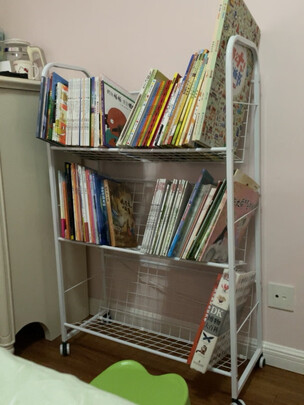 之前孩子小的时候有个小书架,但是不太适合现在的书的大小,这回买了这个可以移动,就可以随便推着走,去别的屋阅读也很方便,安装不难,我一个女的自己搞定,承重还可以,倾斜角摆放的书籍,应该比较好拿书