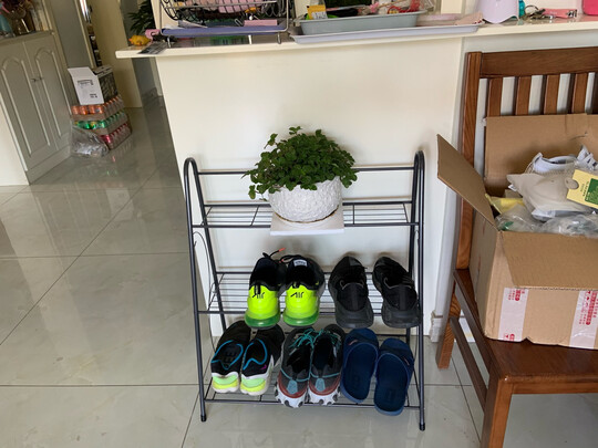 外形外观:不错;占地大小:不太占地方;安装体验:很好安装;产品质量:还可以;其他特色:用来当鞋架了;当花架放大花是没戏的,小花盆还可以,第一层只能用来放多肉,其他花很危险。