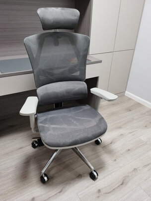 椅子终于到位了,总体质量还不错,网布的材质比较透气,比想象中小一点,坐感还比较舒适,靠背头枕扶手都能调节,灰色系配色感觉比黑色耐看。扶手处有点瑕疵,客服也爽快地更换了。