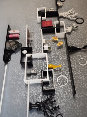 首先,过年期间,购买这个东西,还能这么快就送到,非常的好。 ;其次,产品给人的感觉,非常有质感,够扎实,唯一不好的地方,就是钉墙上的白色连接件,压根钉不进墙里边,1是不好钉,容易伤手,2是不够扎实,直接钉歪了。 ;好在家里有钻孔工具,也得亏了老爸超级强的动手能力,给不锈钢连接件钻孔,墙钻孔,想办法最后成功的安装在了墙上。 ;唯一的缺憾就是,有点歪,感觉无论如何都不可避免,产品很好,但是就是很难安装好,另外,安装好也不稳固,最终解决办法,就是在产品中间,拉了根线来调者。希望设计师以后能多考虑