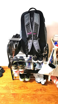 给儿子挑的,看了好久才找到这款,可以放高帮鞋的,尺寸刚好,装好后还挺稳的,黑色耐脏,没有味道