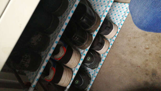 5层还是挺高的,刚好和梳妆台比较般配,最上面一层可以放着杂物,一般来说一层只能放3双鞋,放4双比较费劲,需要那种比较小的鞋子才行