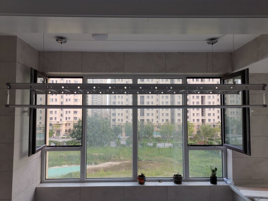 晾衣架非常不错,到货就预约安装了,两个安装师傅装了一个半小时,工作也很认真负责还主动告知怎么保养~给京东点赞?