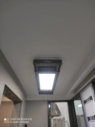 白色挺漂亮,直播间下单的,说是铝合金材质,升降自如,声音很小,照明也可以,没让厂家安装,我自己找师傅安装的,厂家补贴100元安装费。包装很完整,发货也迅速,装在家里很好看,白色简洁漂亮,很干净的颜色。6.18买了好多家电,到货都好快。家里都堆满了。地上长长的那个就是晾衣架。改天再拍个晾衣架升降的视频。