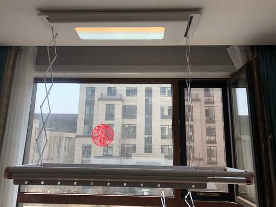 晾衣架今天上午安装完了,买的是新款,质量很好很厚重,厚度真的是很薄,简洁大方,颜色和全屋也很搭配,邦先生这个品牌不错,期待后续使用效果!