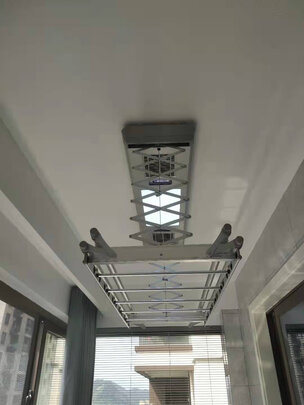 配送快速,送到家中,次日安装,师傅很细心。衣架的颜值太高,家人很满意,开放阳台没有做过多装修改造,原顶顶部,利用灯线电源即可完成安装。收起晾衣杆之后环绕在顶部完美结合。色调淡雅。升降速度不快,稳定,虽然钢丝看着不够粗,但是据安装师傅说是足够了。遥控方式灯光升降,虽然遥控器有点想墙壁开关,事实上也是装在墙上,无须收纳。支持手机小米音箱控制,音箱尚未就位,所以还没测试。以后使用再继续体验。
