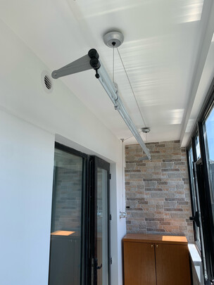 晾衣杆的质量很好 看上去就很有质感 还有专门晾被子跟床单的地方 设计很合理 关键是还送了好多衣架 质量也不错 摇杆的阻力也很好 摇着很顺滑 安装的师傅也很认真负责