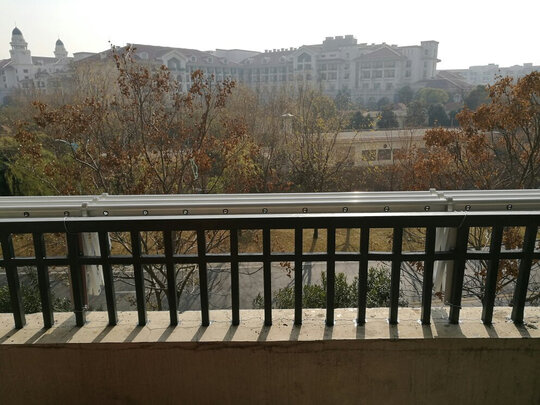 买到装很快,这次大概用了1个星期多,因为是双十一,客服态度很好,一直积极回答我的所有问题,安装师傅很好,安装的认真,也很快,唯一就是我希望撑架底座能用U型卡固定在栏杆上就完美了,谢谢