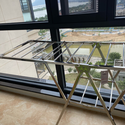 外形外观:不锈钢材质,有点分量,收放自如。;承重能力:晒一床被子没问题。;产品材质:不锈钢铝合金。;安装服务:收到打开就能用。;其他特色:网上浏览了很久,最终选择了这个好太太,大品牌,值得信赖。收到包装很完整,没有磕碰。不锈钢铝合金挺亮有光泽,打开就能用。不用时,收起靠墙,不占地方,很方便。