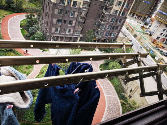 这个晾衣杆设计得太好了,非常符合我的需求,以前的晾衣杆很高,每次都需要用撑衣杆才能往上挂,现在这个不但可以调节上下高度,还可以调节左右长度,伸手就够得着,大大的解决了我的问题