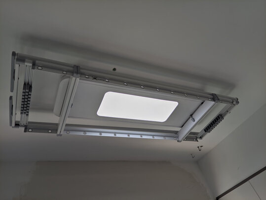 晾衣架关注了很久,最终在6.1活动入手这款邦先生M50s,外观银色的,很漂亮,还送了10个铝制衣架。遥控操作,操作起来很方便,联网后手机操作,很智能。衣架自带照明灯,亮度足够。收起来很小巧,省空间,不像手动晾衣架那么笨拙。预约安装,半个小时装完,服务很专业。总之,非常满意。京东物流送货也很及时!