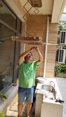 晾衣架用起来真的不错,展开之后很长,以后晒被子足够用,尺寸属于超薄的,刚好适合我家吊顶比较低的情况。安装师傅服务也挺到位的。