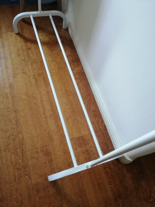 价廉物美的晾衣架,买来放卧室挂日常衣物的,尺寸也刚好合适!下面还可以放物品,不影响打扫地面卫生,虽然就几根小管子但很实用,安装也非常简单,漂亮!哈哈哈