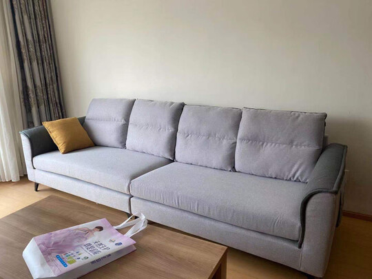 沙发很好看,因为太懒,还没入住,防尘布就不揭了,不好铺。推荐购买。全友的家居还是质量不错的。10分给9分吧