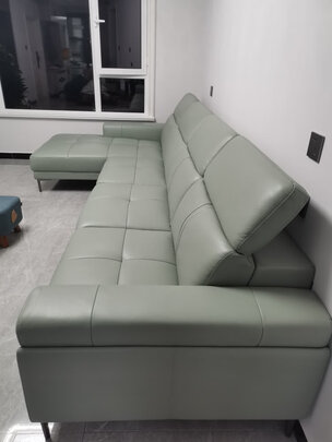 这是我网购买过最大件的产品了,之前心里担心质量,收货安装后真的不错,沙发很漂亮,是真皮的,真皮颜色高大上,档次很高,坐着舒服,还有包安装的小熊帮帮的两个小师傅很不错,这次沙发网购很愉快的