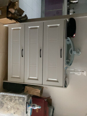 整体满意,材质还不错,略有木质味道,没有什么其它味道,商家服务还不错,款式非常喜欢,大气,购买的是100的尺寸,稳固,没用后面里面的固定螺丝站的很稳,不晃动。拉手材质不错,独立包装,配备螺丝用小袋装好。有一处没有最好,不过商家服务态度还可以,给五星好评!