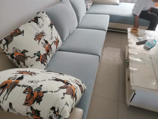 沙发不错,简约大气,表面柔软,坐着舒服。布艺沙发质量方面超出我的想象,非常满意??