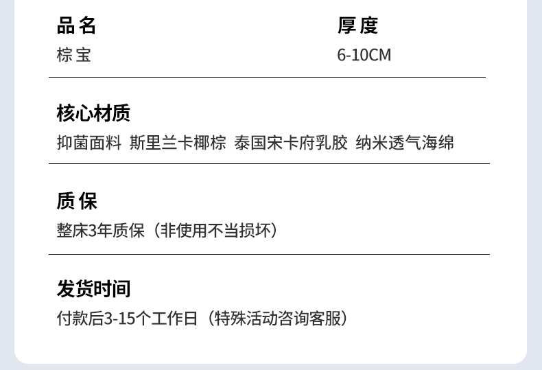 入手指南【全友(QUANU)椰棕床垫】质量怎么样,价格多少钱,值得入手吗全友(QUANU)椰棕床垫怎么样?入手指南【全友(QUANU)椰棕床垫】质量怎么样,价格多少钱,值得入手吗?物流非常快,安装很负责。卫生也帮打扫了。非常喜欢。下...