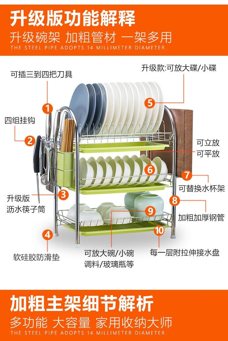 厨房置物架沥水碗碟架放碗置物餐具收纳多功能厨房置物架大容量家用多功能 B型三层黑色砧板套装厨房置物架沥水碗碟架放碗置物餐具收纳多功能厨房置物架大容量家用多功能 B型三层黑色砧板套装...