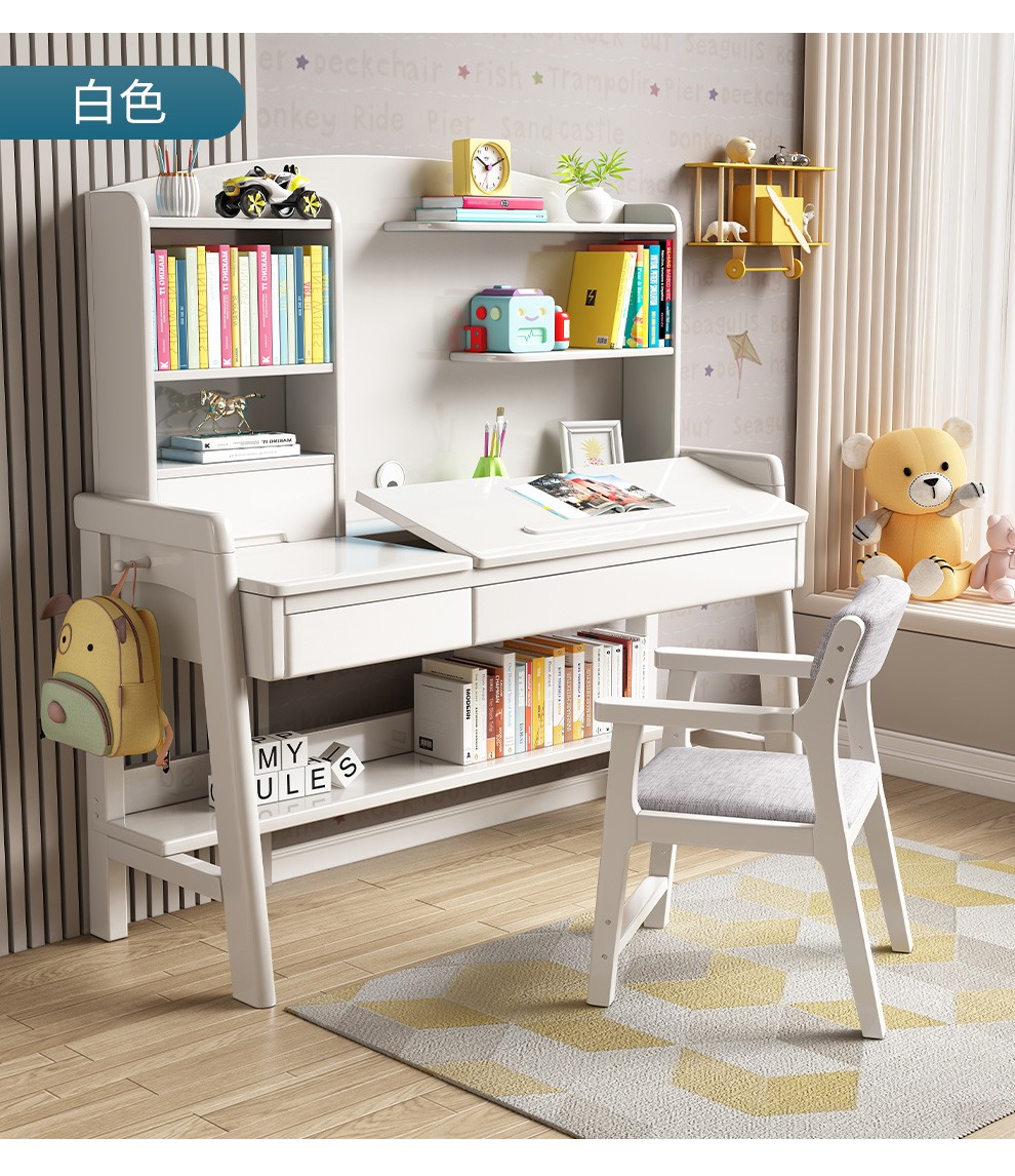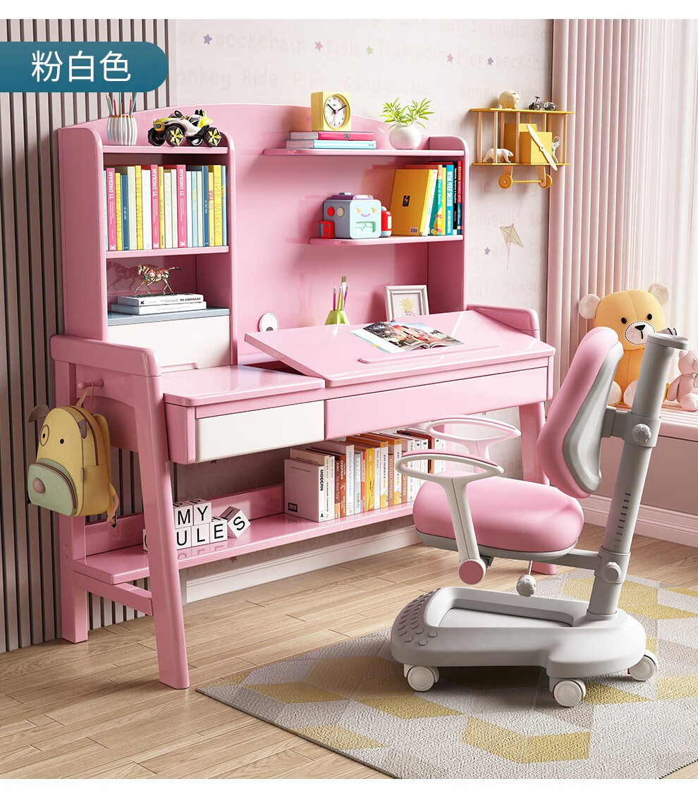 精灵空间 京东居家优选 儿童学习桌椅套装 学习桌 儿童书桌 可升降带书架 马卡龙粉 80cm桌椅套装...