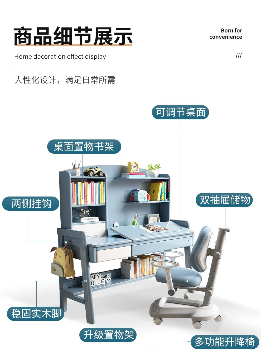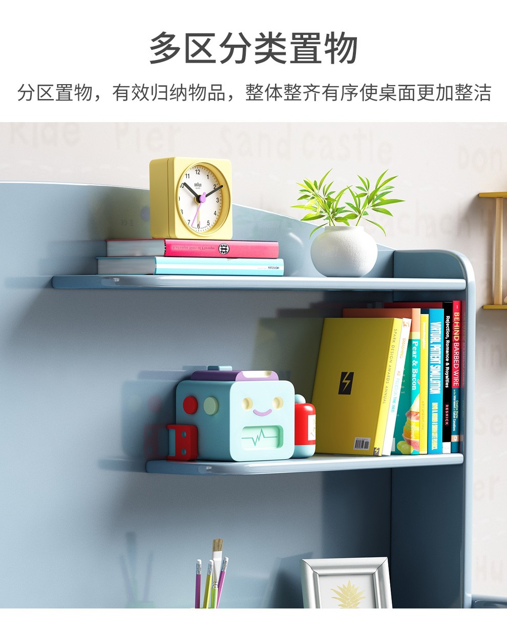 京东精灵空间 京东居家优选 儿童学习桌椅套装 学习桌 儿童书桌 可升降带书架 马卡龙粉 80cm桌椅套装 到手价:999元