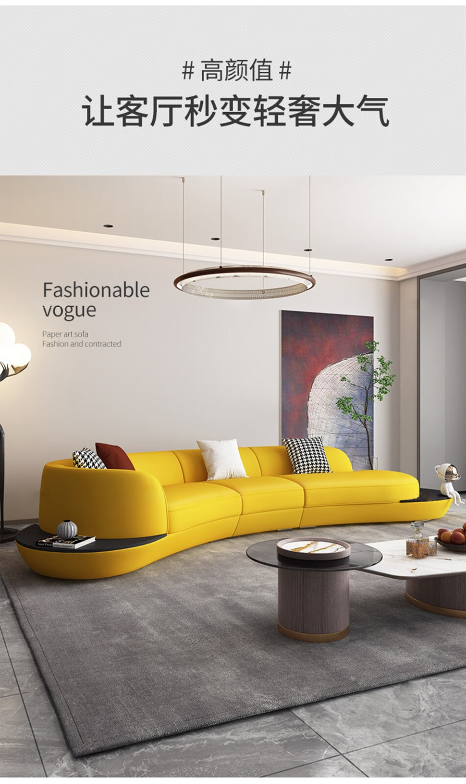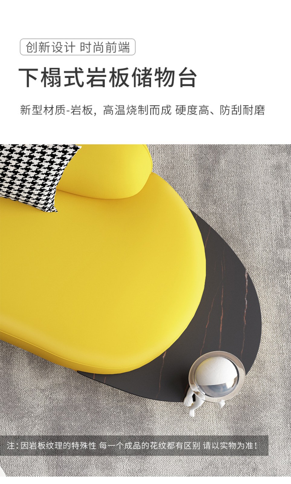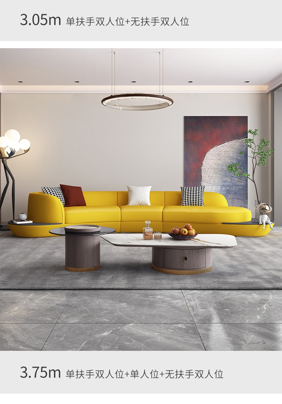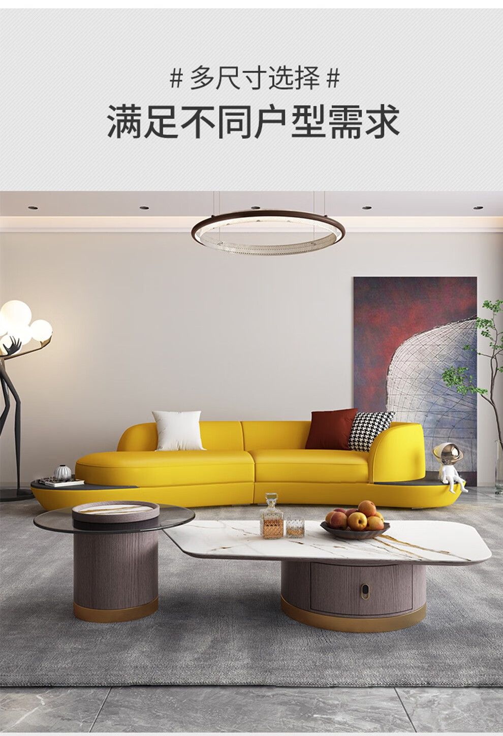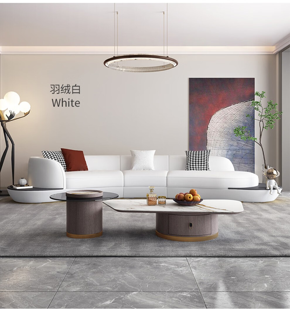 优卡吉 意式极简岩板茶几电视柜组合大小圆可伸缩小户型轻奢创意圆形茶几YYJJ-125 茶几组合