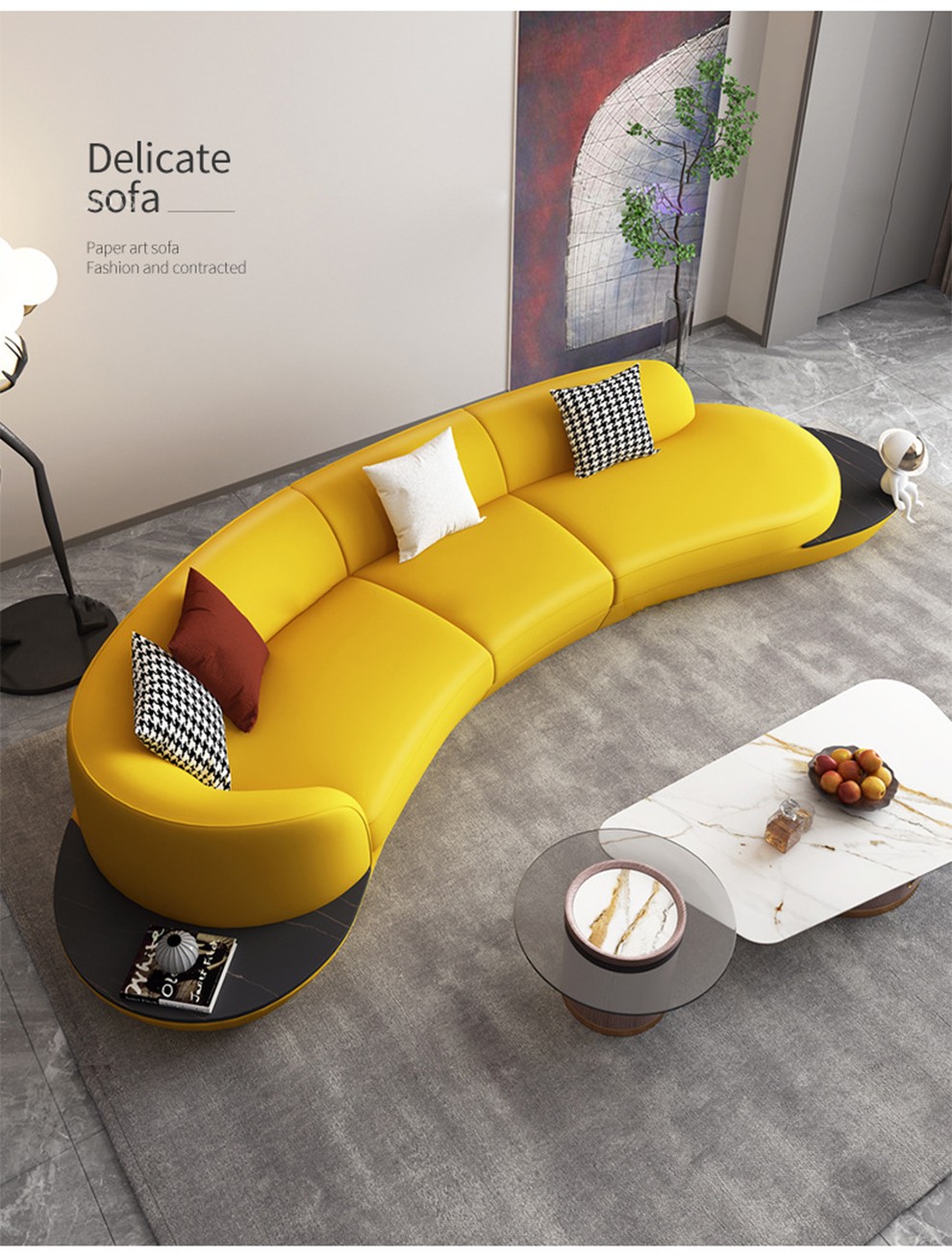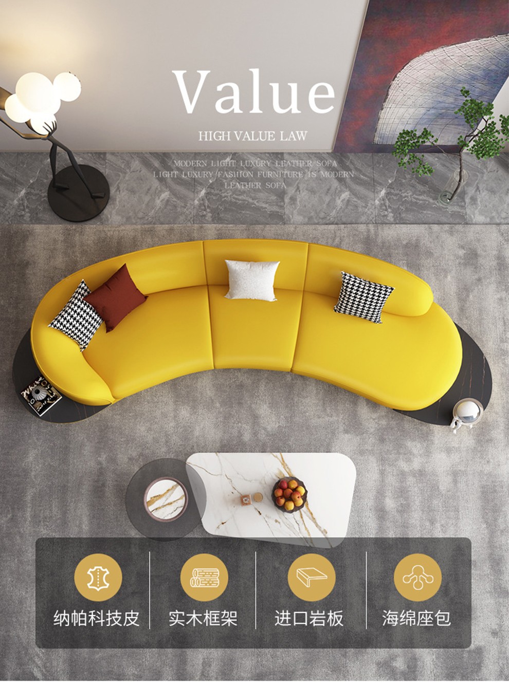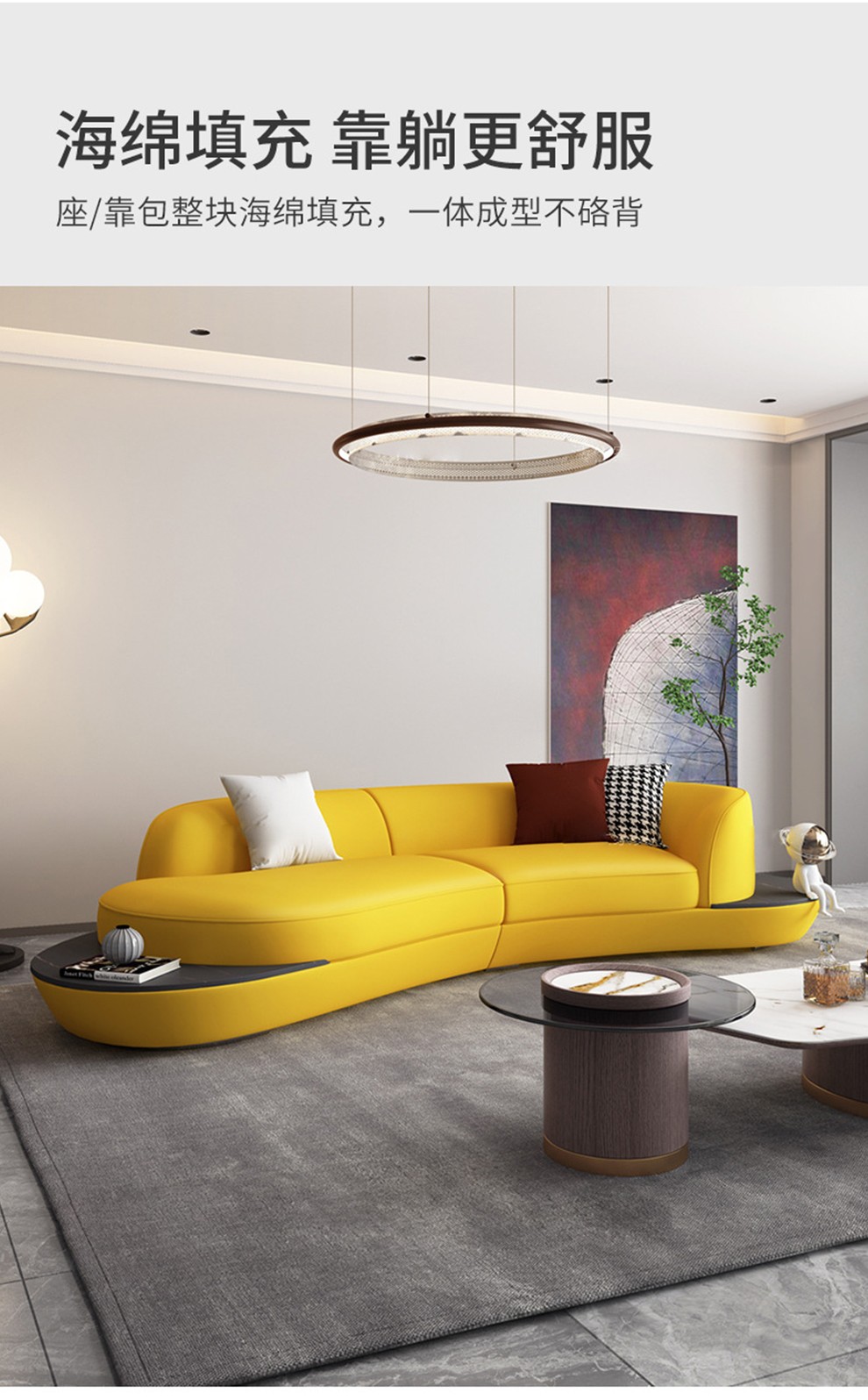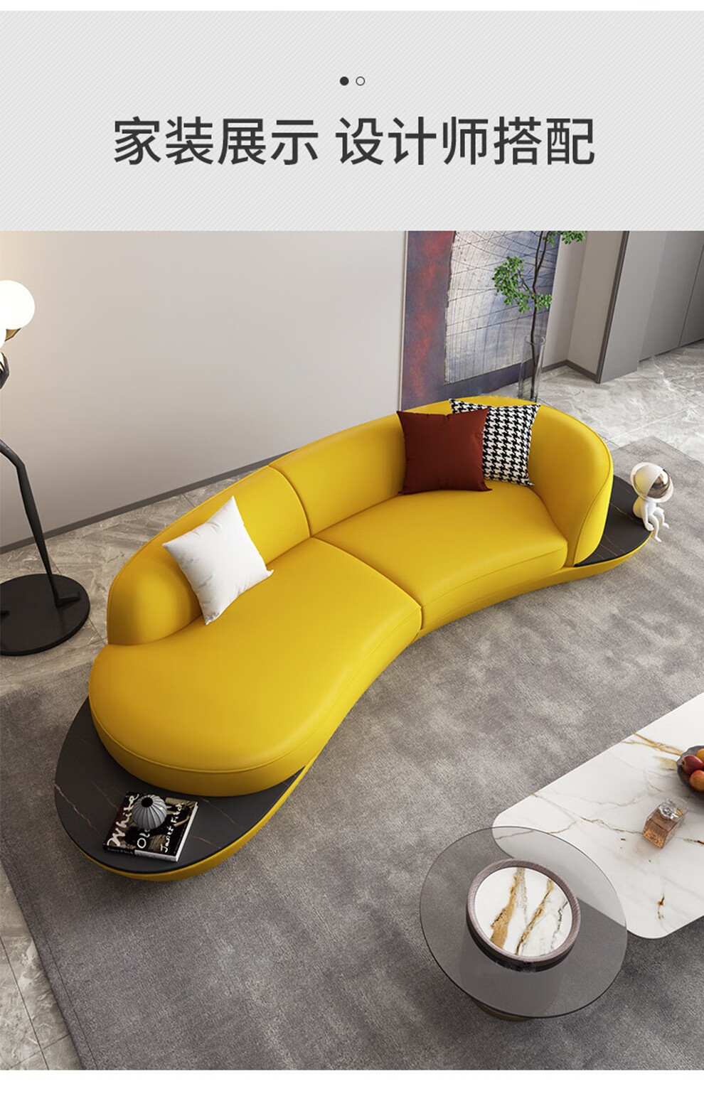 优卡吉 意式极简岩板茶几电视柜组合大小圆可伸缩小户型轻奢创意圆形茶几YYJJ-125 茶几组合