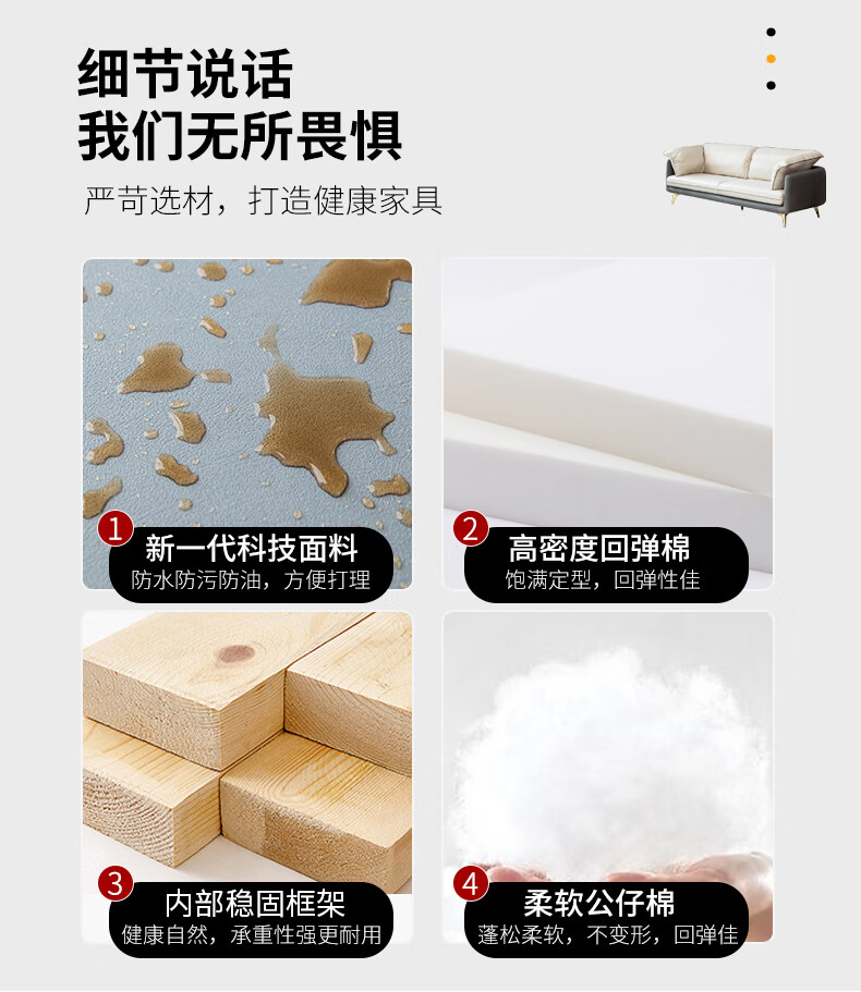 梵爱沙发布艺沙发意式极简科技布大小户型客厅整装家具 双人位+单人位+贵妃+脚踏 舒适版-(桉木框架+海绵座包)梵爱沙发布艺沙发意式极简科技布大小户型客厅整装家具 双人位+单人位+贵妃+脚踏 舒适版-(桉木框架+海绵座包)...