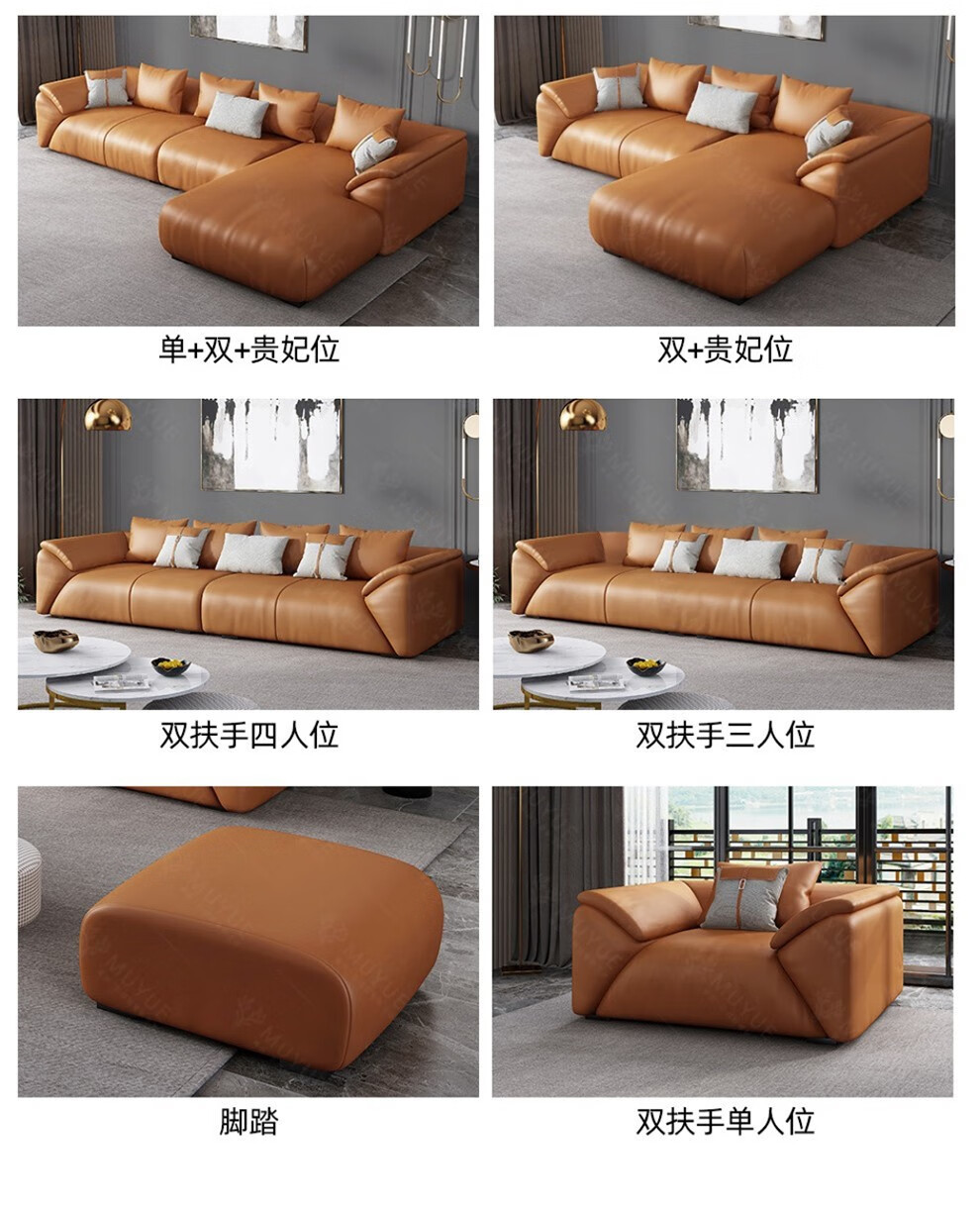 慕跃 轻奢极简真皮沙发转角客厅大小户型贵妃纳帕皮艺沙发 单+双+贵妃+转角 组合慕跃 轻奢极简真皮沙发转角客厅大小户型贵妃纳帕皮艺沙发 单+双+贵妃+转角 组合...