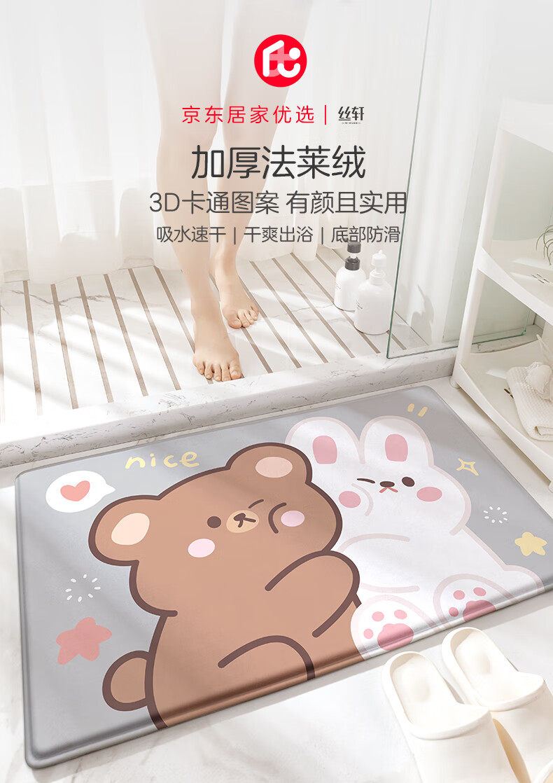 京东居家优选 丝轩 吸水地垫门垫浴室防滑垫卫生间脚垫家用速干垫子地毯 熊抱50x80cm京东居家优选 丝轩 吸水地垫门垫浴室防滑垫卫生间脚垫家用速干垫子地毯 熊抱50x80cm...