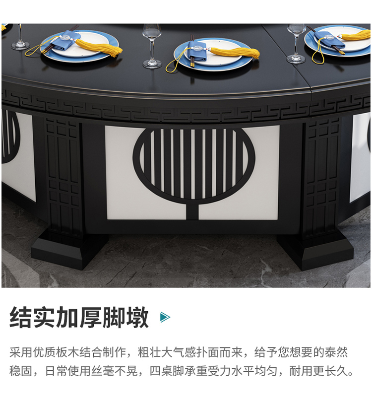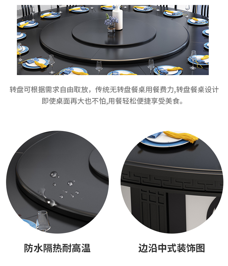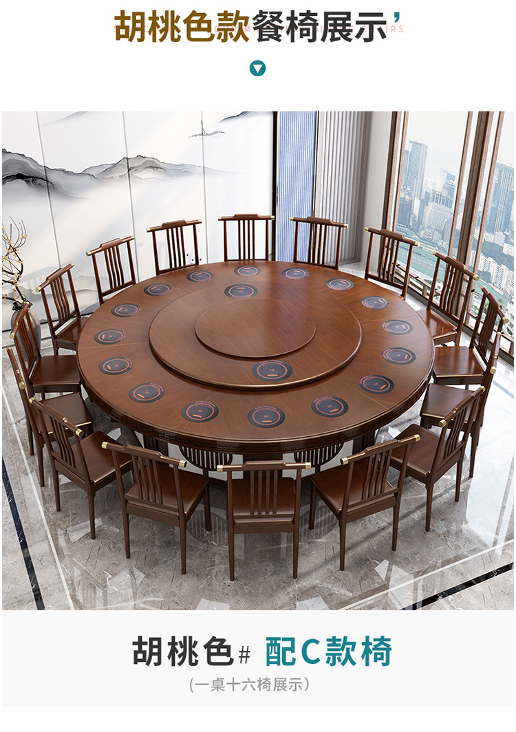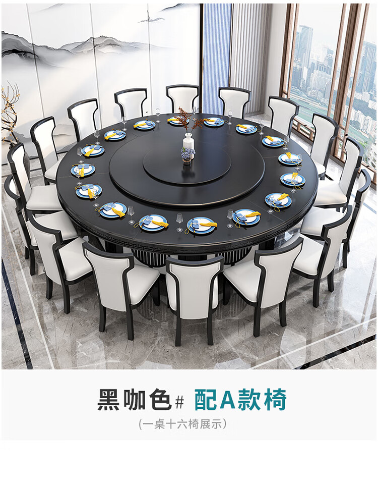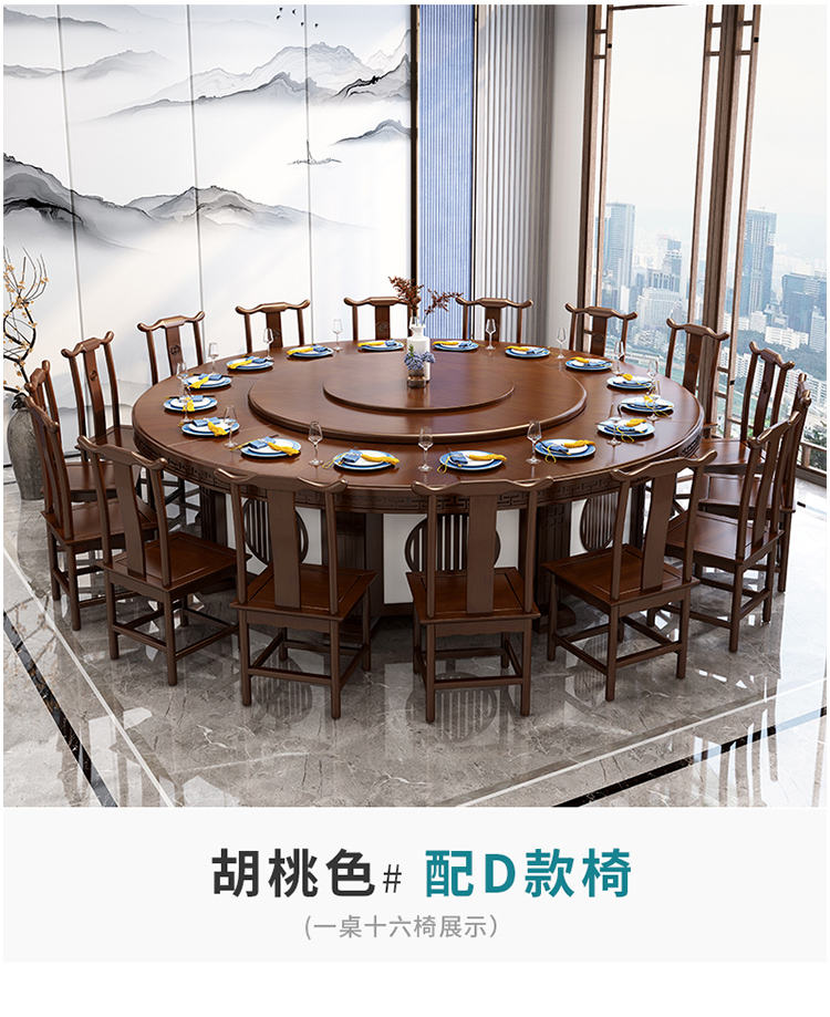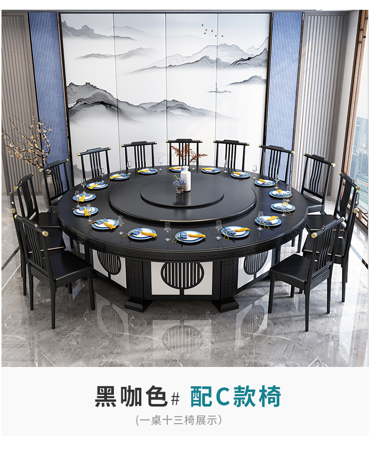 卡洛森餐桌 实木餐桌椅组合1.8米新中式酒店大圆桌带转盘家用圆形12人饭桌子 黑紫色(实木椅) 1.2米单桌(配0.8m转盘)...
