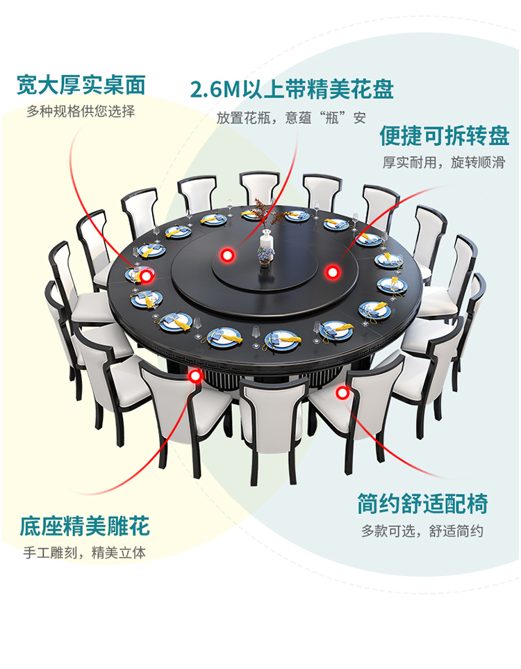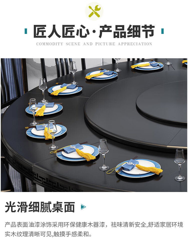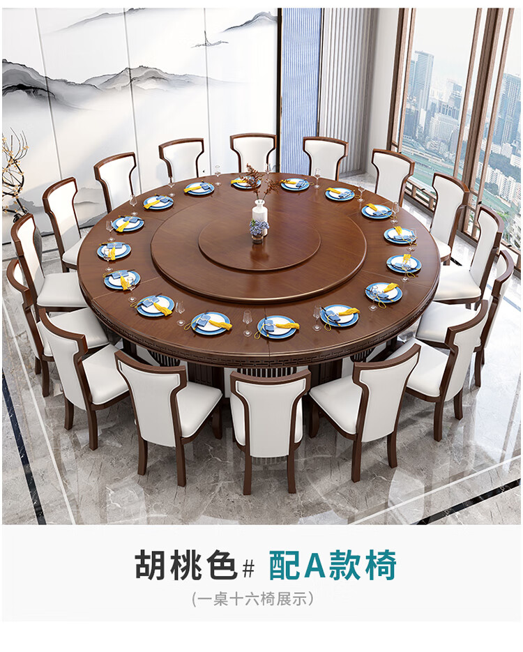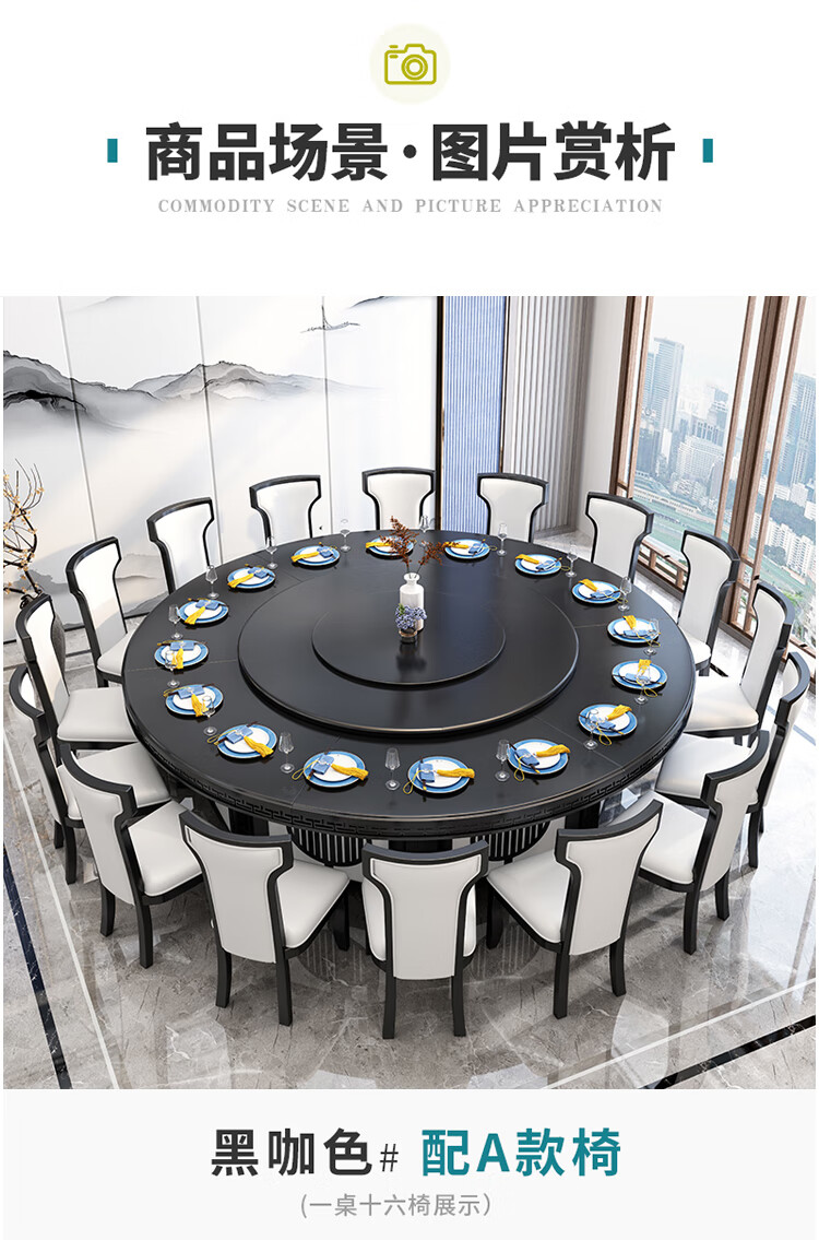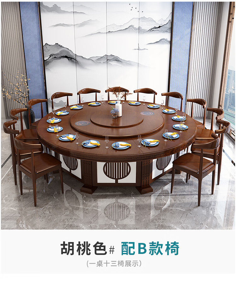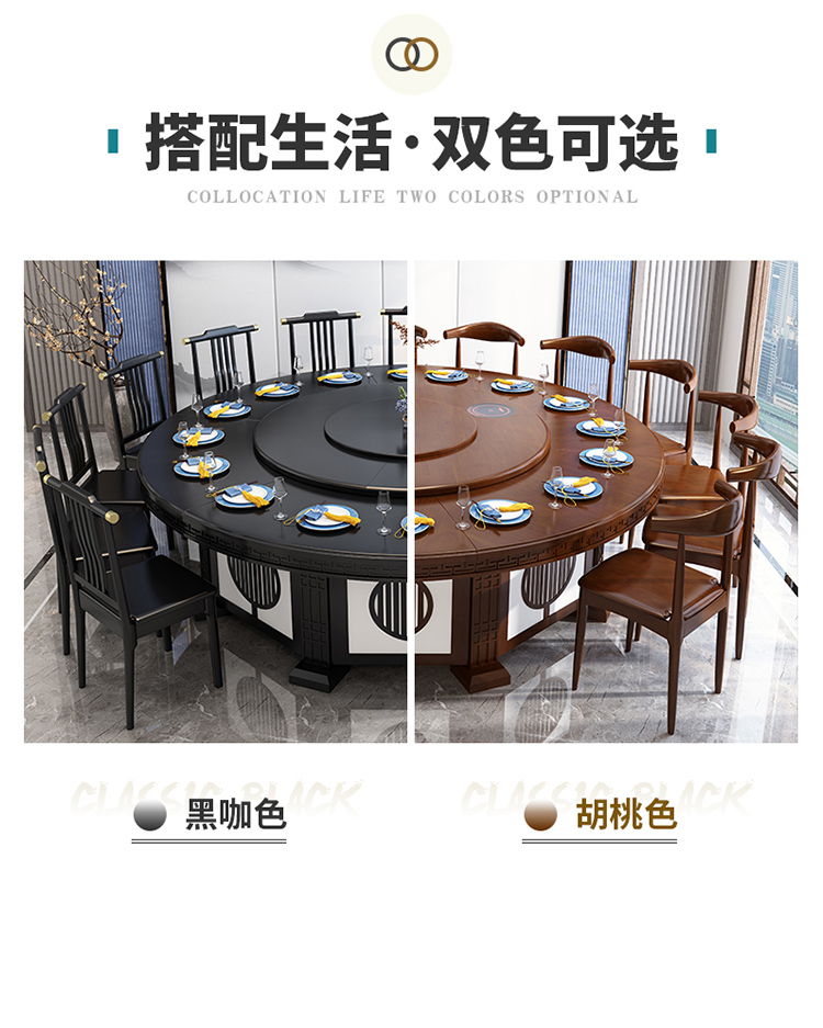 京东卡洛森餐桌 实木餐桌椅组合1.8米新中式酒店大圆桌带转盘家用圆形12人饭桌子 黑紫色(实木椅) 1.2米单桌(配0.8m转盘) 到手价:1580元