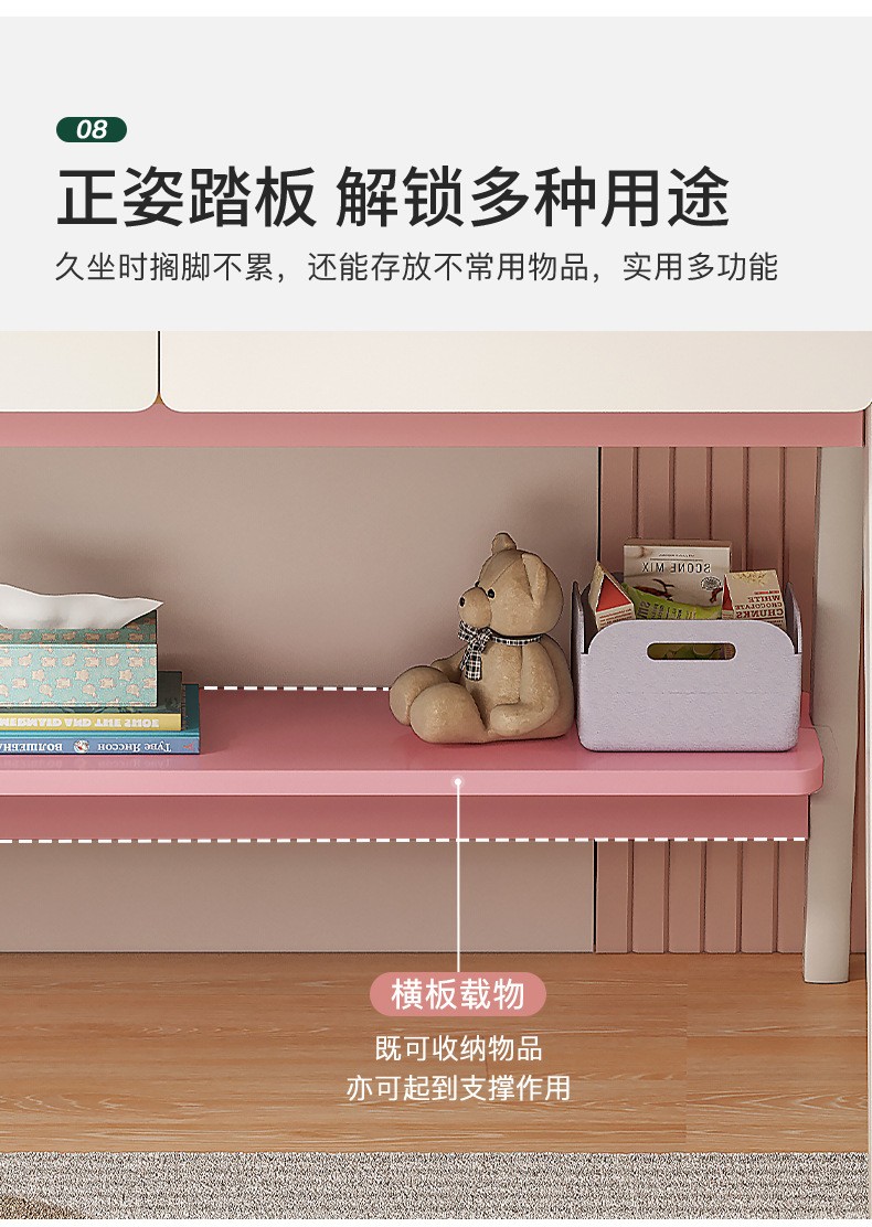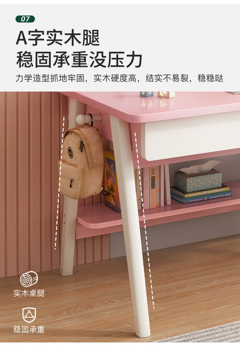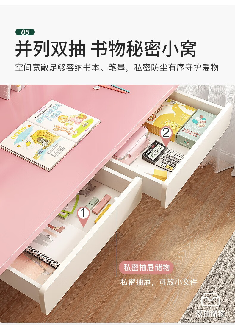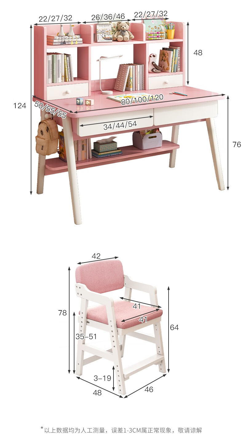 京东精灵空间 京东居家优选 儿童学习桌椅套装 学习桌 儿童书桌 可升降带书架 马卡龙粉 80cm桌椅套装 到手价:999元