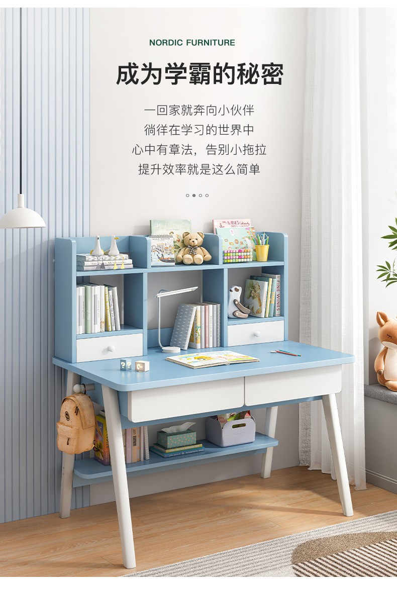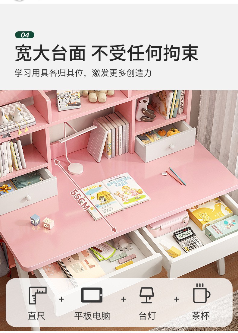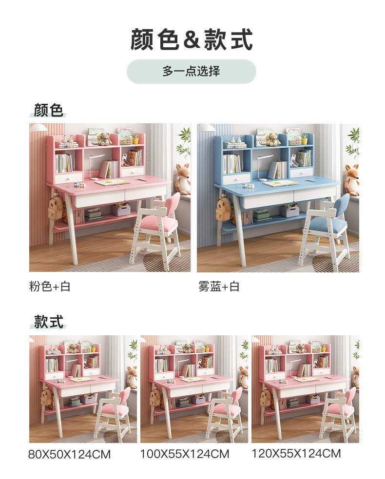 精灵空间 京东居家优选 儿童学习桌椅套装 学习桌 儿童书桌 可升降带书架 马卡龙粉 80cm桌椅套装...