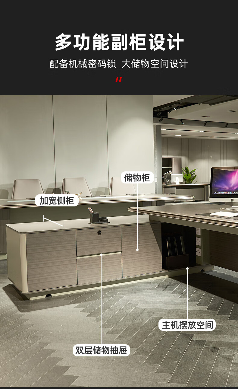 安美诚 办公家具老板桌椅主管桌实木贴皮大班台经理桌办公桌椅2.0*1.0米老板桌+侧柜+小柜安美诚 办公家具老板桌椅主管桌实木贴皮大班台经理桌办公桌椅2.0*1.0米老板桌+侧柜+小柜...