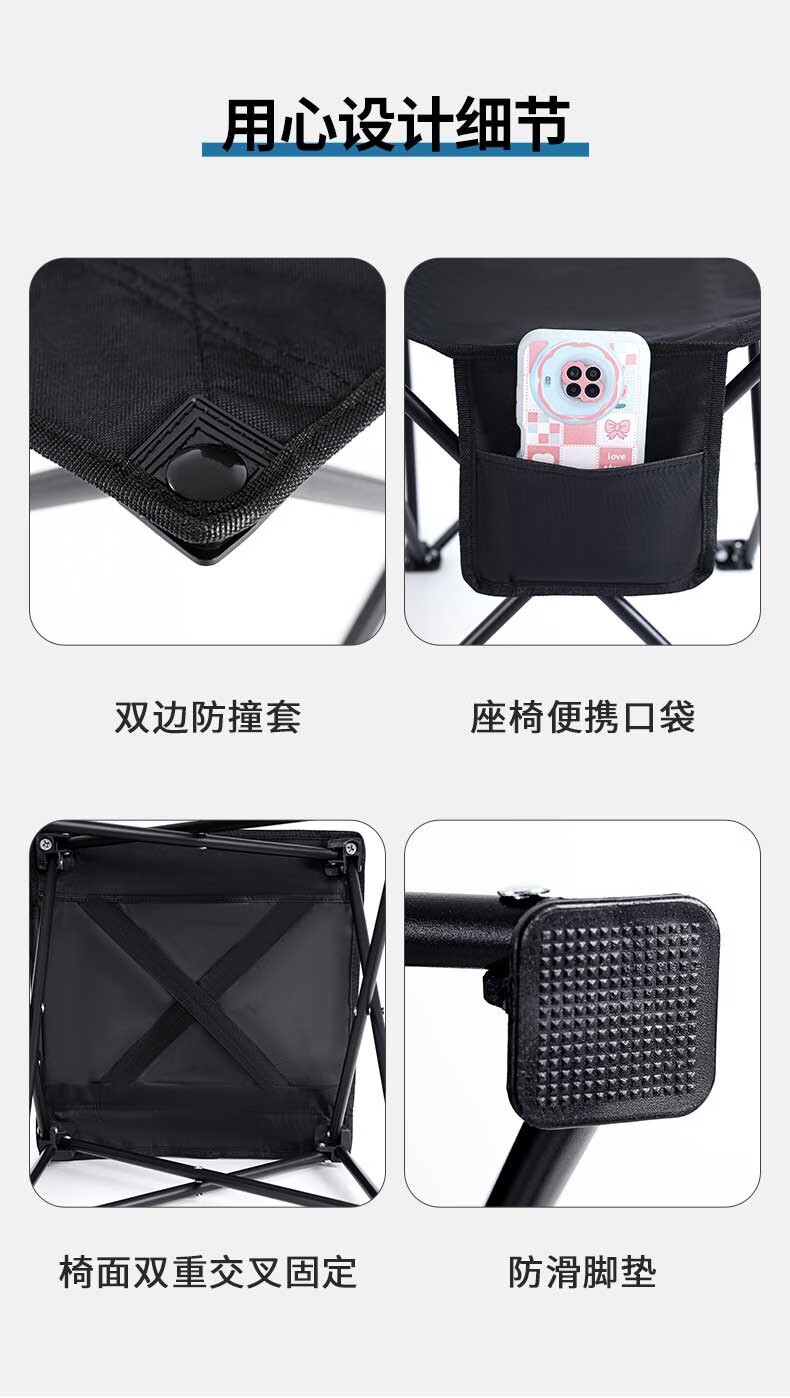 奥伦福特 户外折叠椅便携式沙滩椅野餐露营靠背椅写生椅便携式院子休闲椅子 大号克米特-黑色...