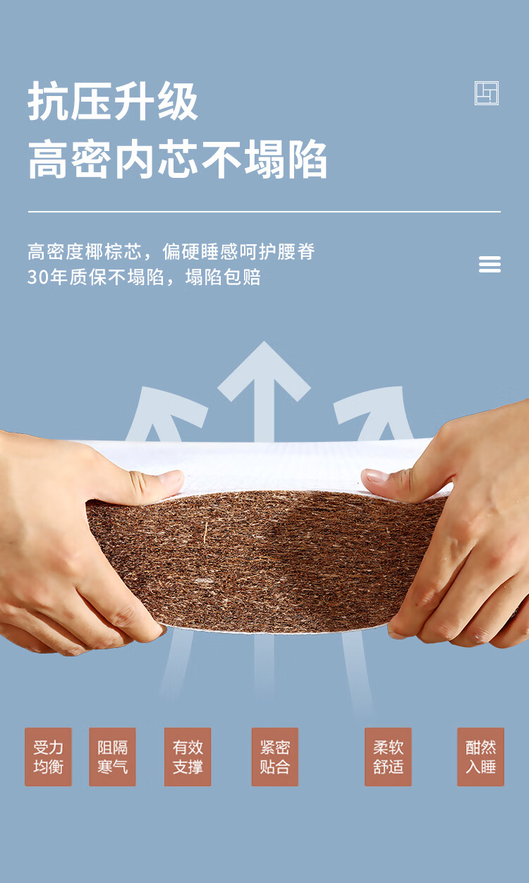 海马床垫泰国天然乳胶环保3E椰棕静音独立弹簧压缩床垫真空卷包席梦思1.5m1.8米软硬两用厚可定制 护脊型-独立弹簧+环保椰棕 偏硬 22cm厚 1350*2000...