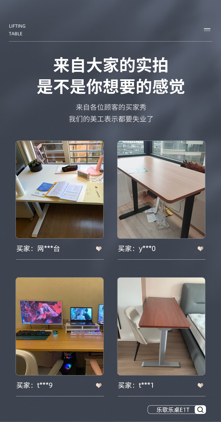 图文曝光【乐歌E6升降桌】好不好?入手怎么样?用户实话实说乐歌E6升降桌怎么样?图文曝光【乐歌E6升降桌】好不好?入手怎么样?用户实话实说?惊人的美貌,升降丝滑,滚轮很轻便,还能自锁,方便移动,强烈推荐。太喜欢了!居家...