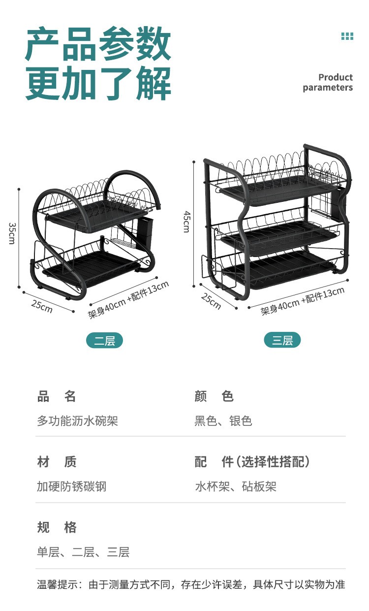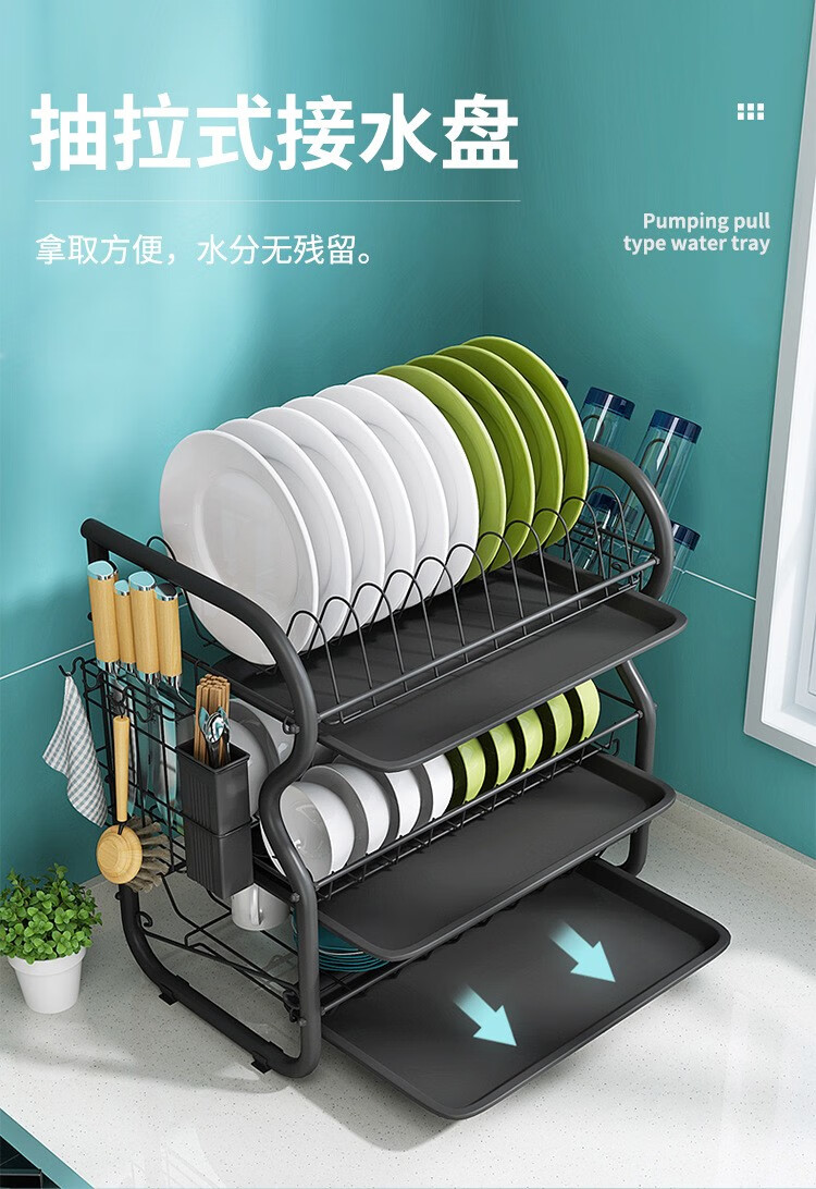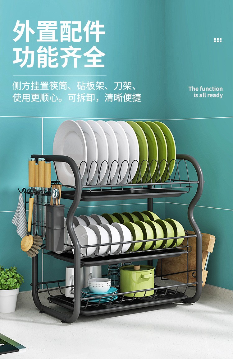 厨房置物架沥水碗碟架放碗置物餐具收纳多功能厨房置物架大容量家用多功能 B型三层黑色砧板套装厨房置物架沥水碗碟架放碗置物餐具收纳多功能厨房置物架大容量家用多功能 B型三层黑色砧板套装...
