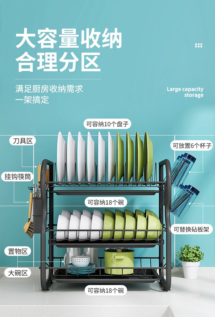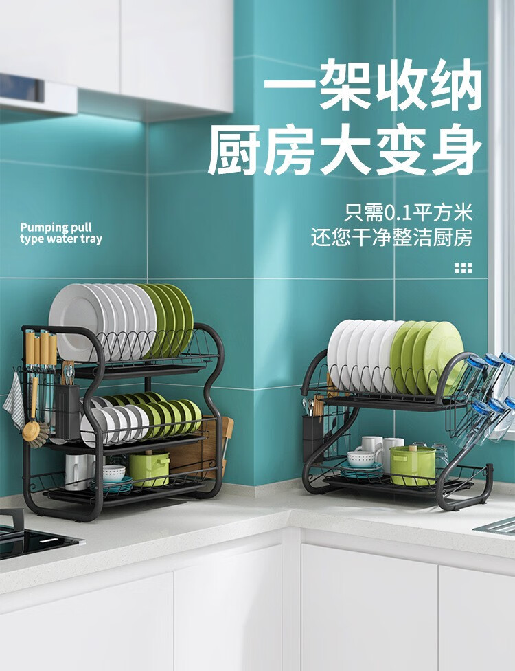厨房置物架碗架沥水架家用洗放碗碟盘子收纳架控水放碗架台面收纳架放碗柜砧板收纳盒厨房用品 三层黑色砧板款厨房置物架碗架沥水架家用洗放碗碟盘子收纳架控水放碗架台面收纳架放碗柜砧板收纳盒厨房用品 三层黑色砧板款...