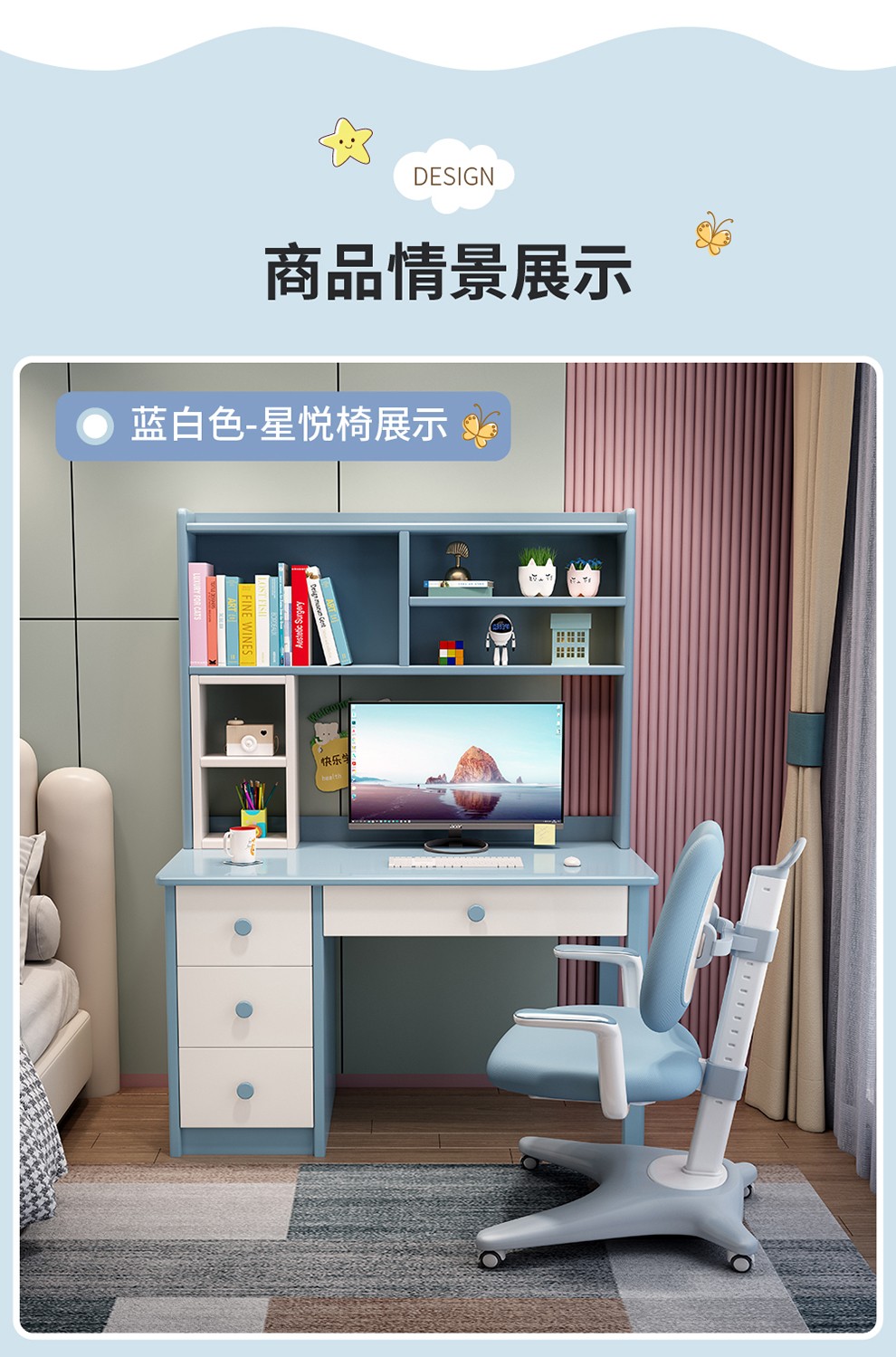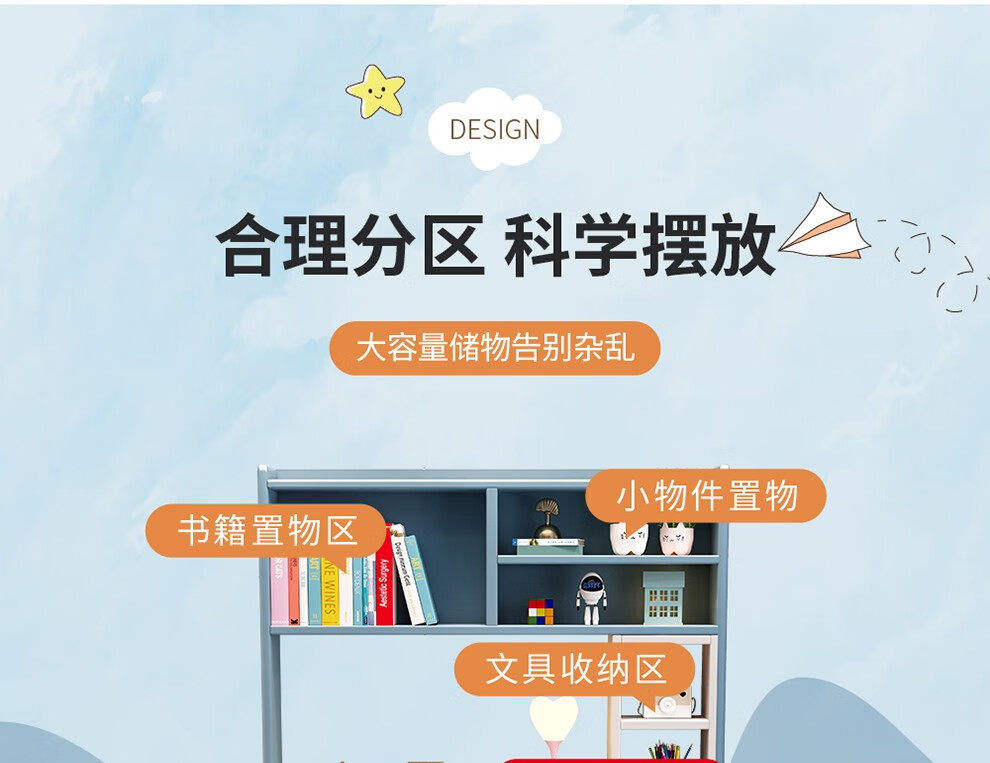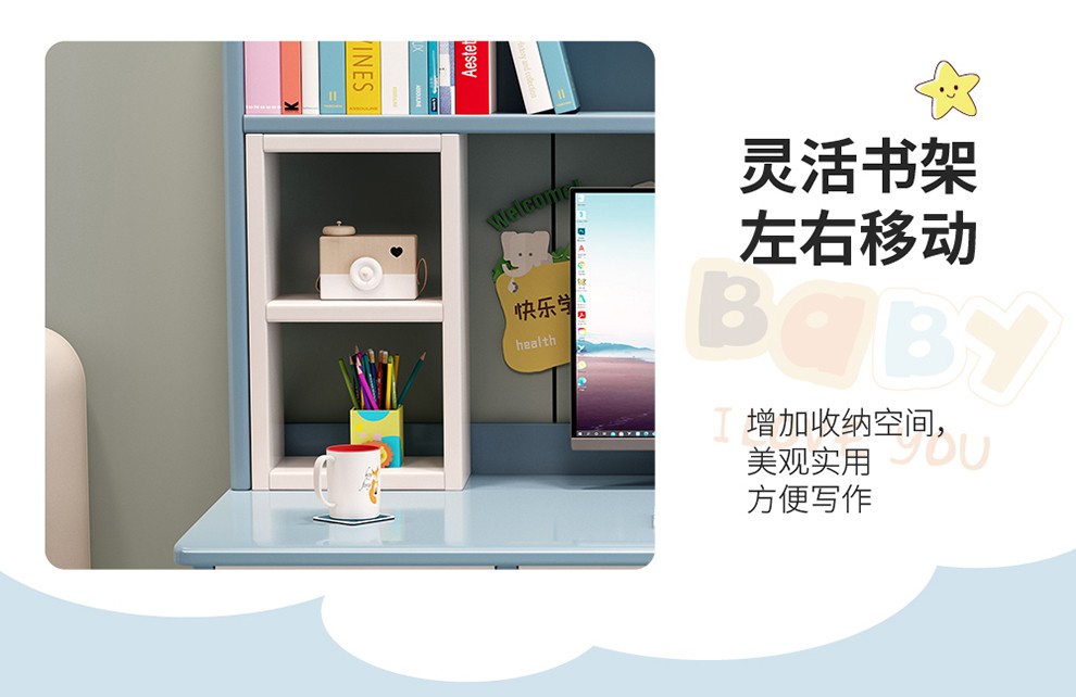 京东精灵空间 京东居家优选 儿童学习桌椅套装 学习桌 儿童书桌 可升降带书架 马卡龙粉 80cm桌椅套装 到手价:999元